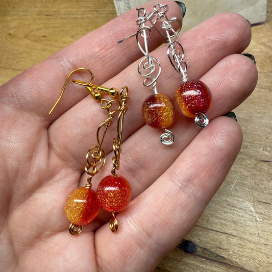 Color-changing sunset earrings - your choice of bright silver or harvest gold wire