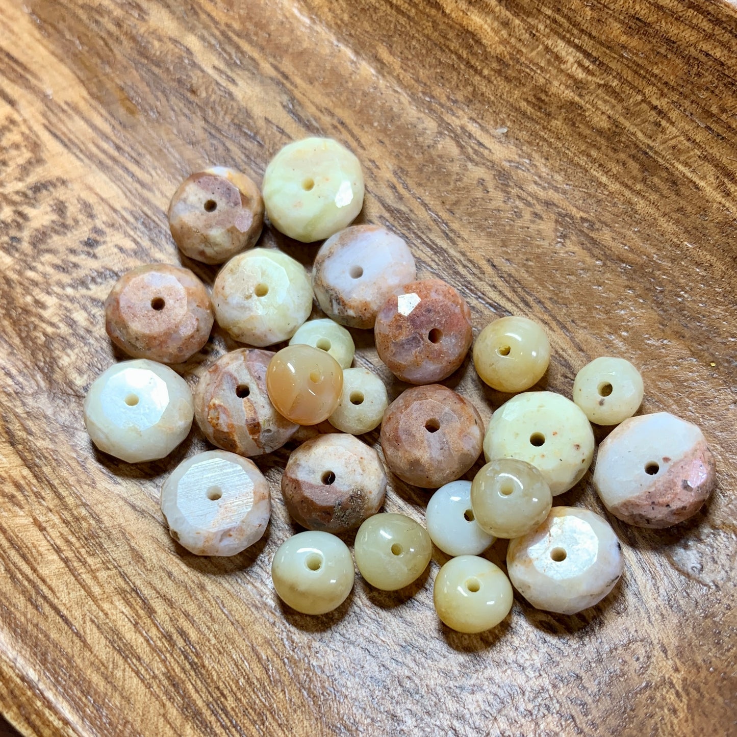 For "disappointing opals" I picked out two complementary types of non-precious opal: yellow and morado. That said, none of the morado opal actually has morado (purple) in it; the accompanying note talks about the purple, but I only had enough stones with purple inclusions to do the subscriptions. What you see in the photos is what I have left - well, a good representational handful of them, anyway - and the price for this month has been adjusted down accordingly.