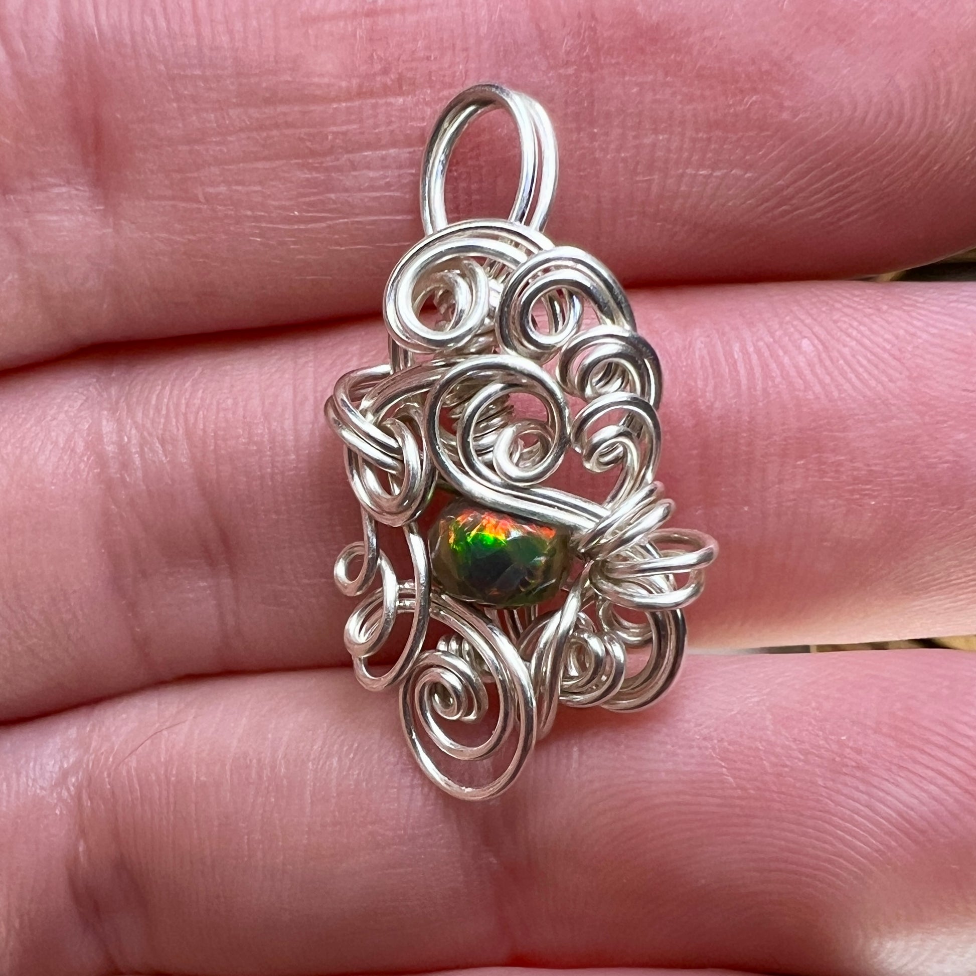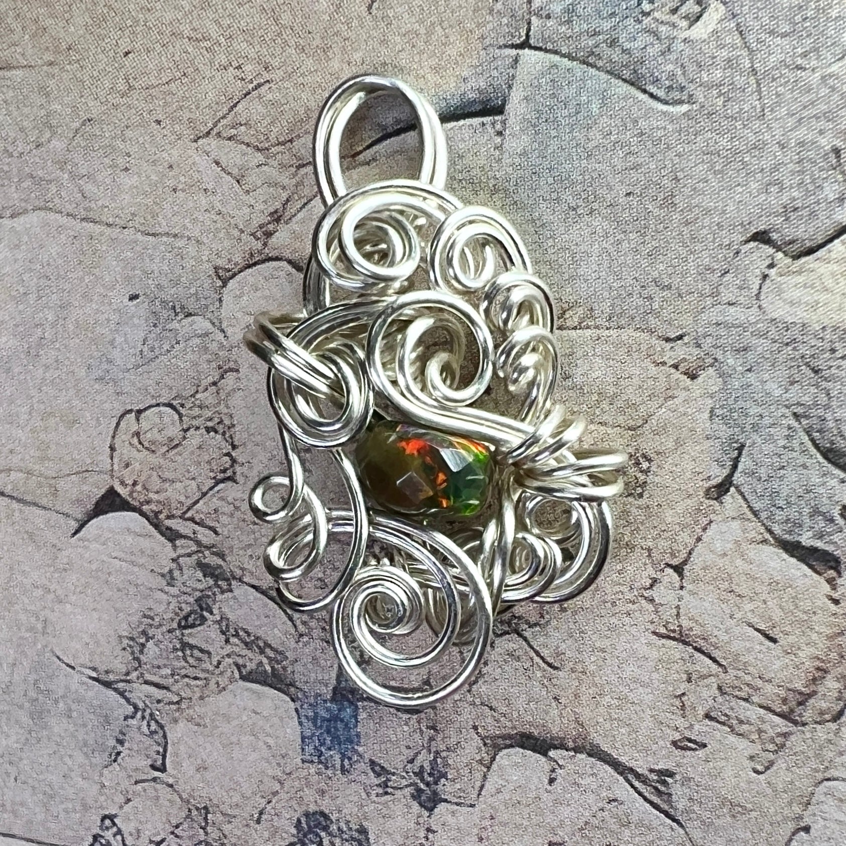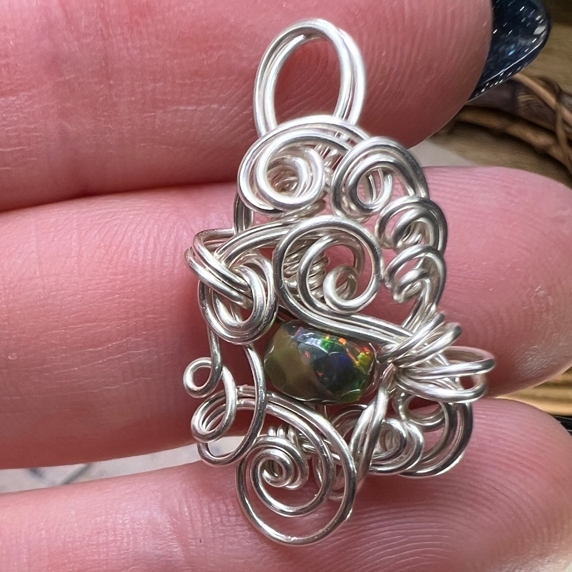 A tiny Ethiopian opal too imperfect to use in my regular work, but too fiery to discard!