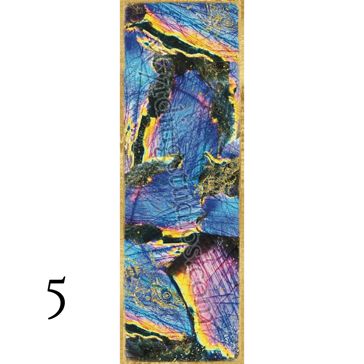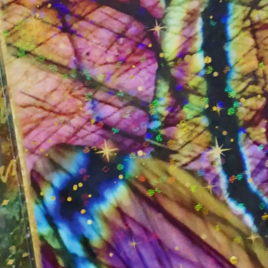 Labradorite is endlessly fascinating to me, with its amazing range of colors and patterns - so I took high-res photos of some particularly spectacular pieces and created original digital collages which I then had printed on heavy cardstock with a sparkly holographic finish.