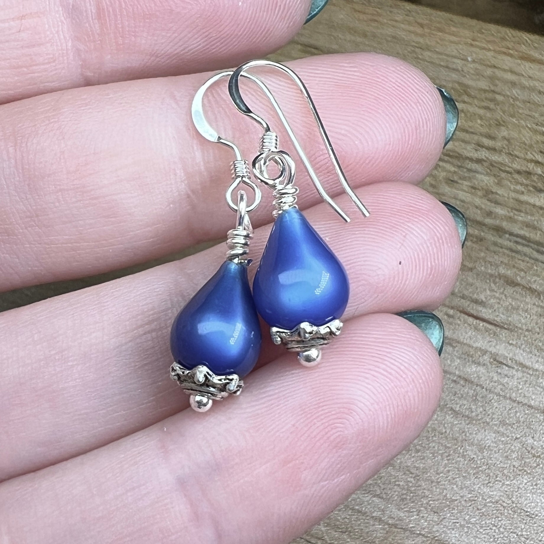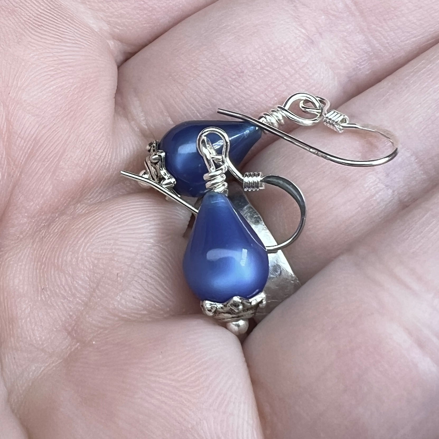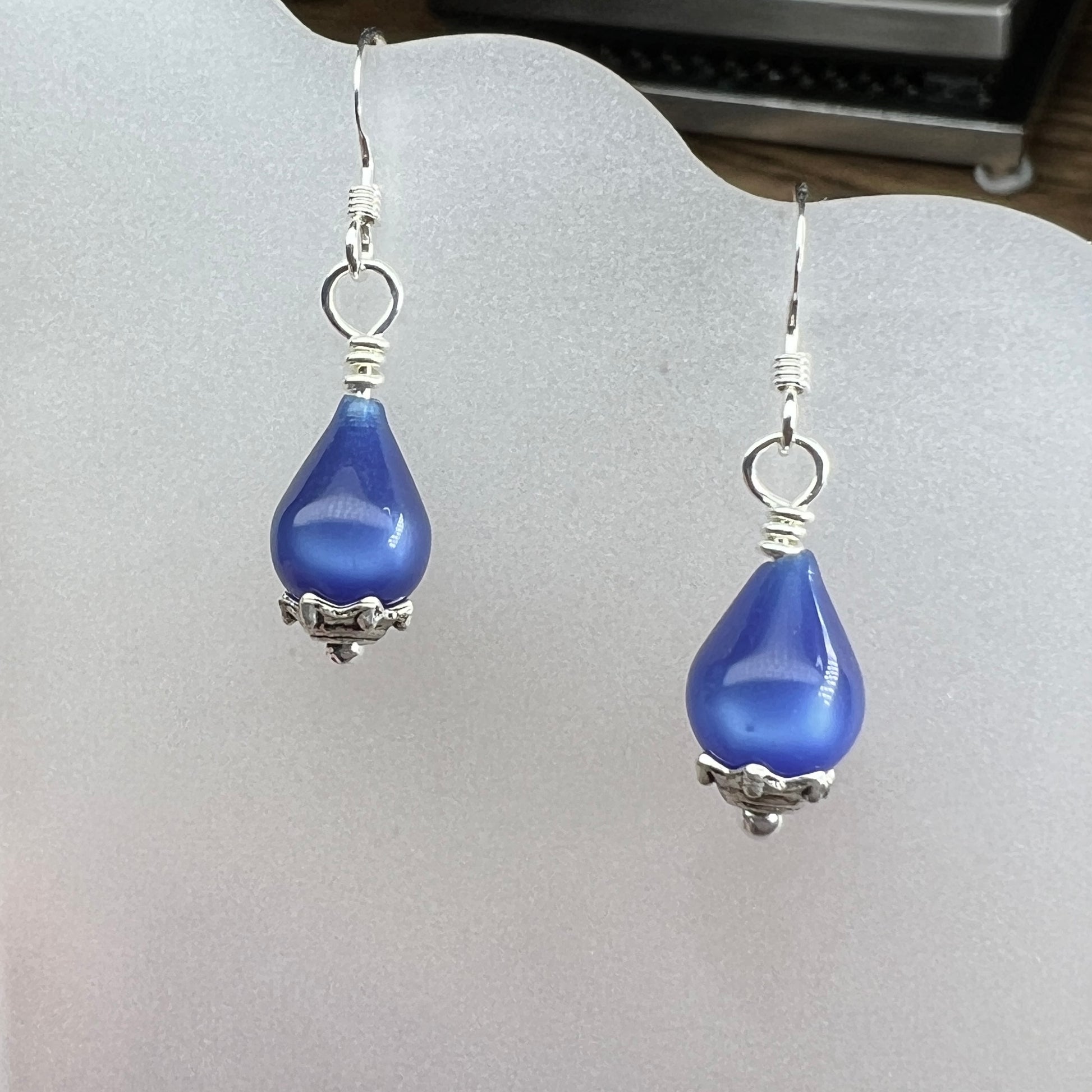 A shorter version! Vintage moonglow glass beads with silvery accents.
