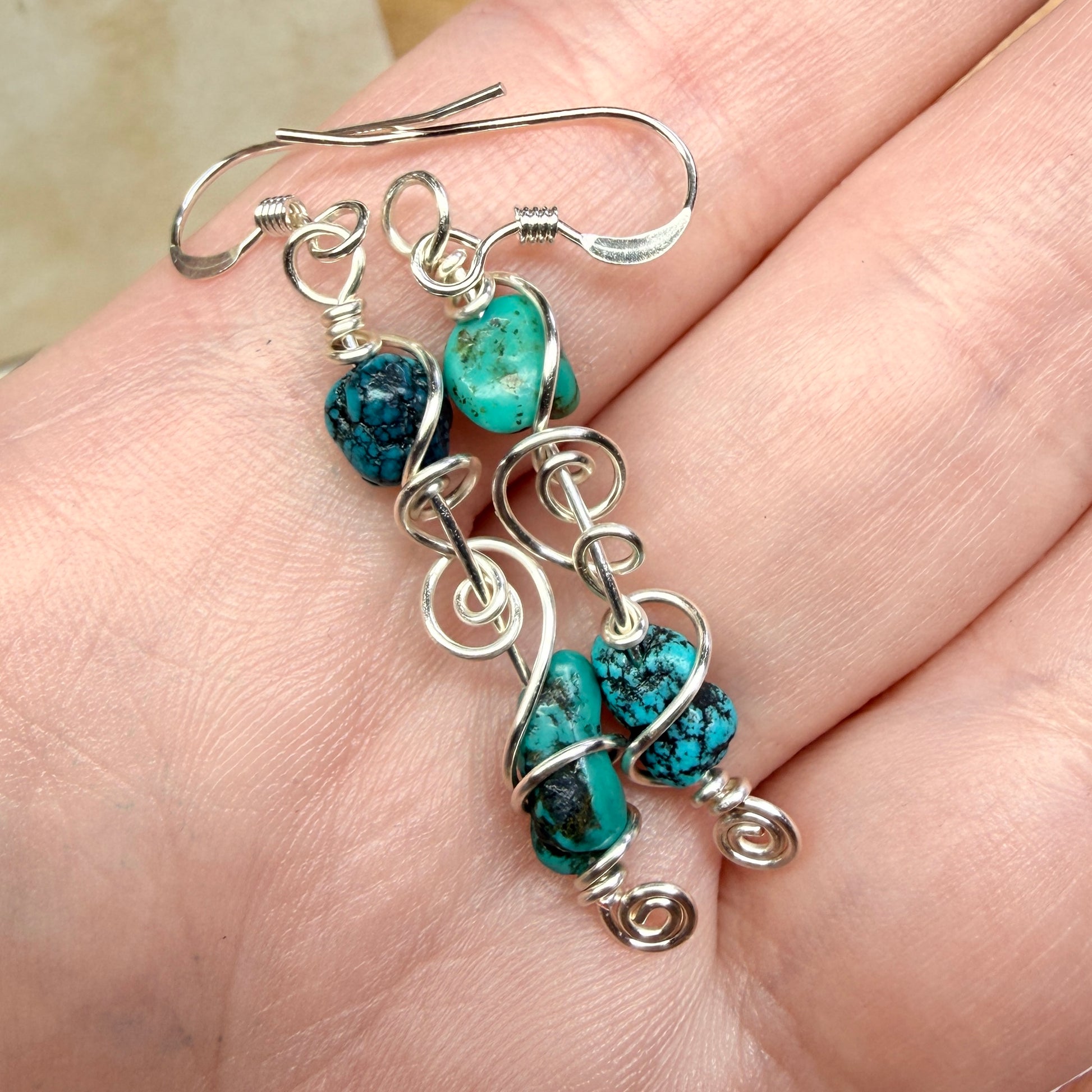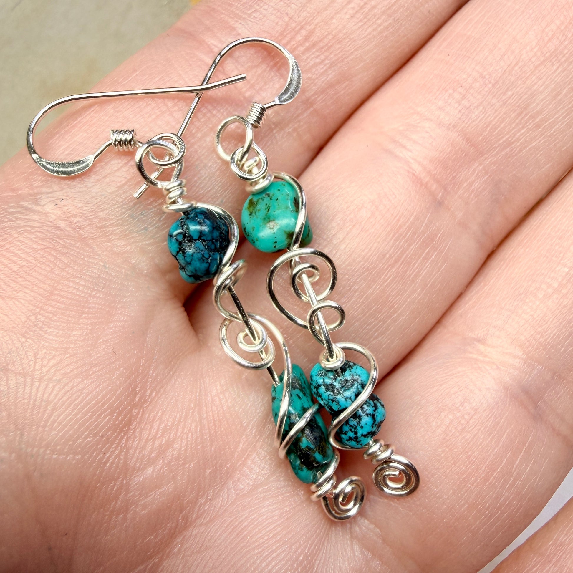 Small nuggets of turquoise in varying shades of blue green. I don’t know the exact provenance of this batch of turquoise, but it is definitely the real thing, not one of the many fakes, and while I believe it is stabilized (most turquoise is) I don’t think it is dyed.