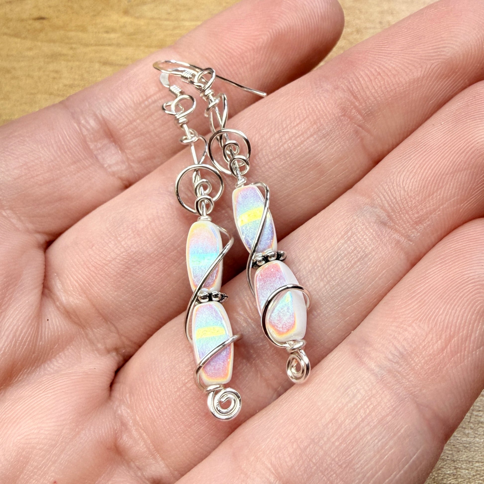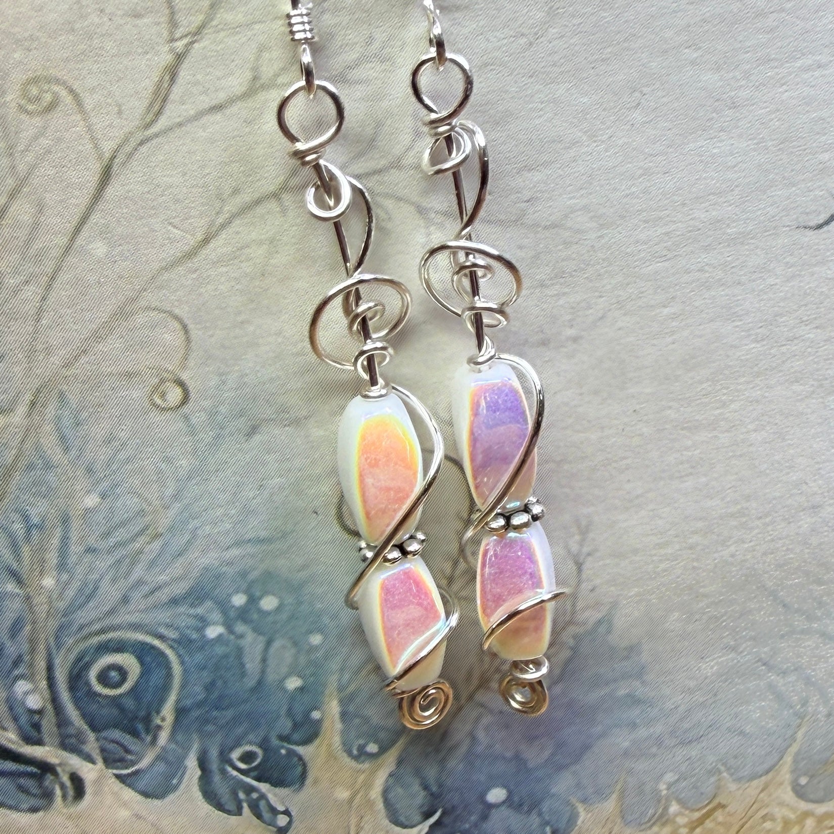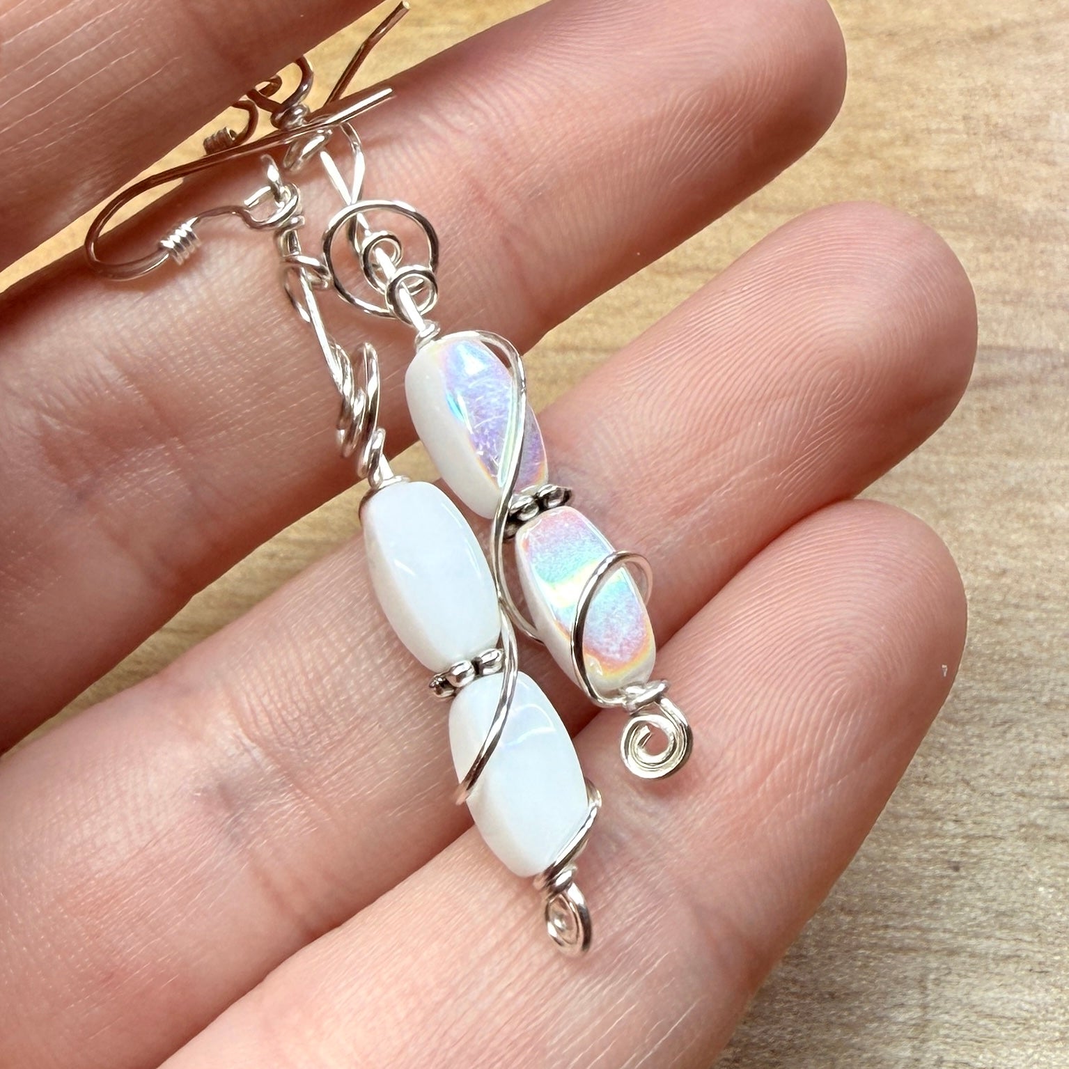 These vintage Czech glass beads are really lovely - opaque white glass with a shimmery AB finish on one side. I’ve never seen anything quite like them!