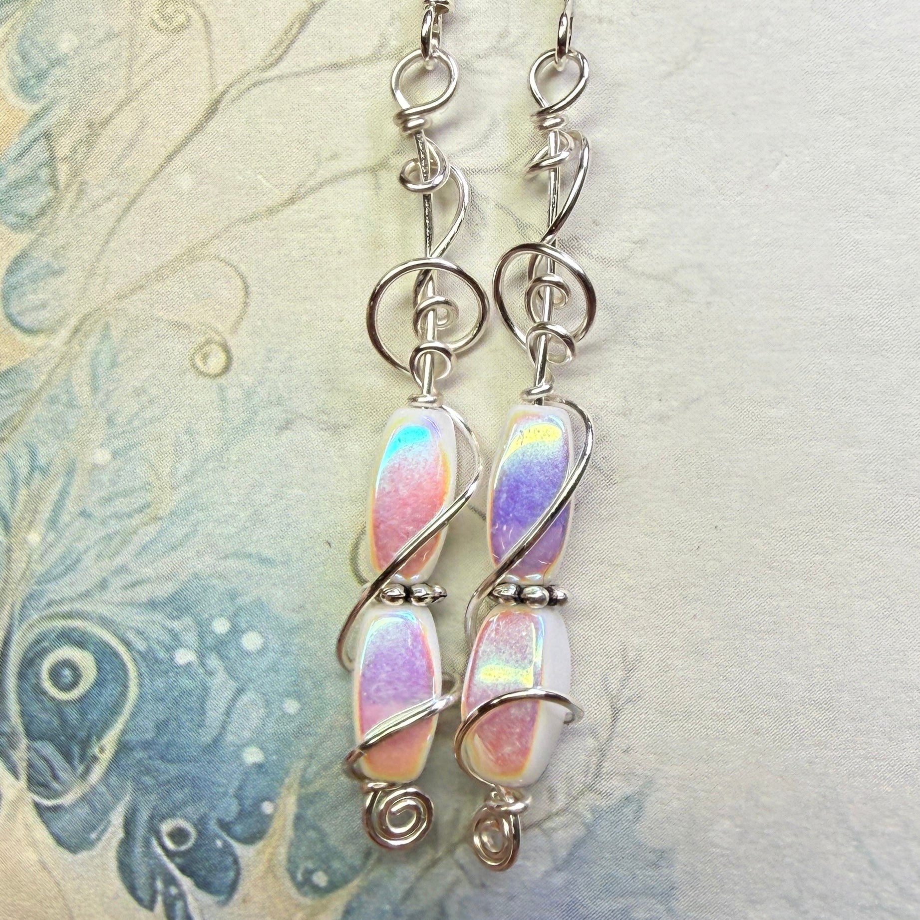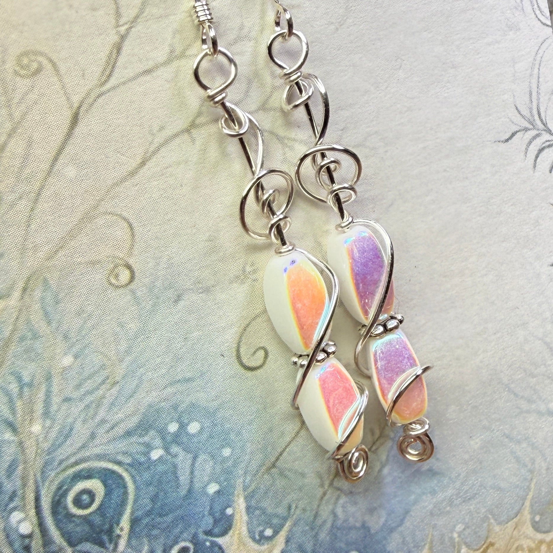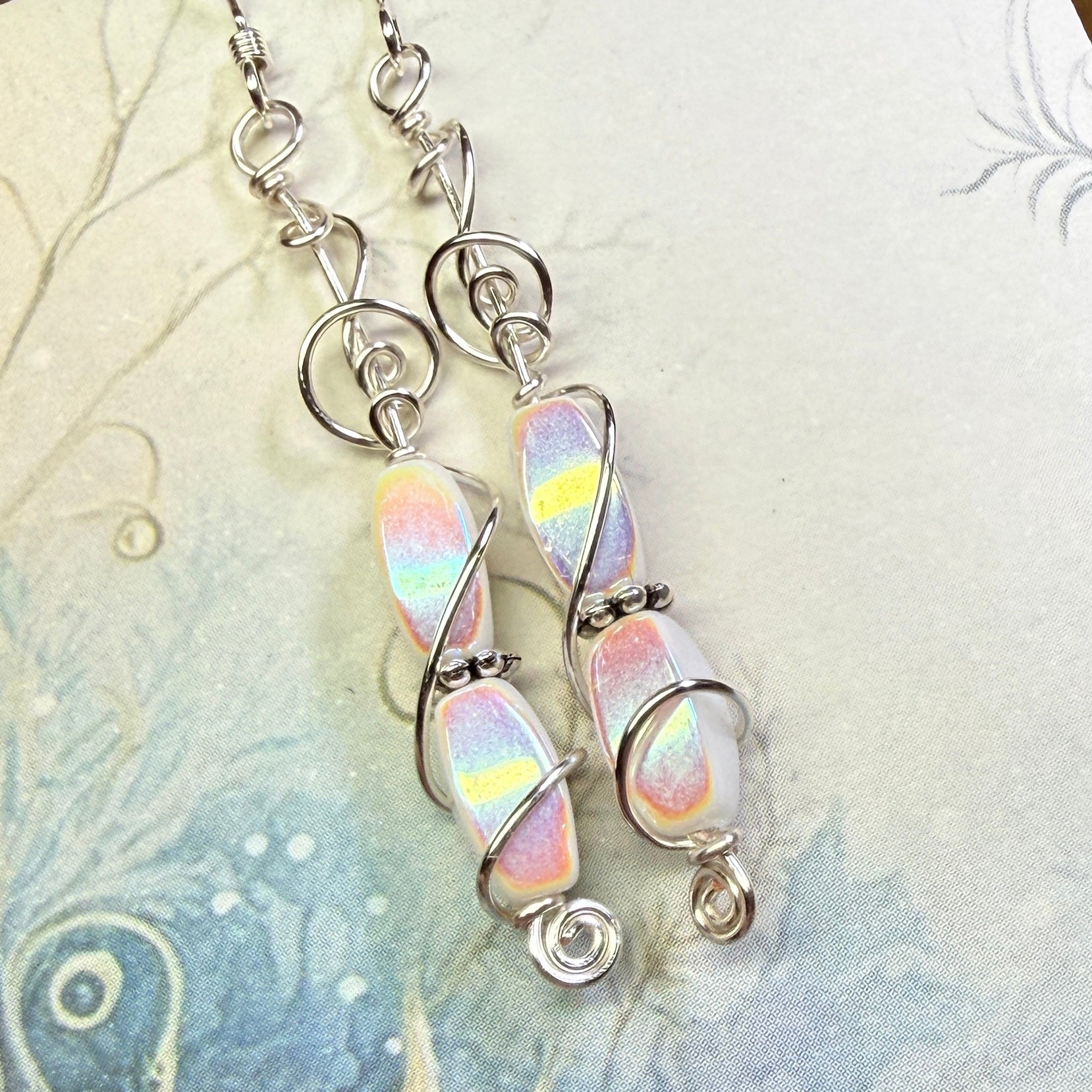 These vintage Czech glass beads are really lovely - opaque white glass with a shimmery AB finish on one side. I’ve never seen anything quite like them!