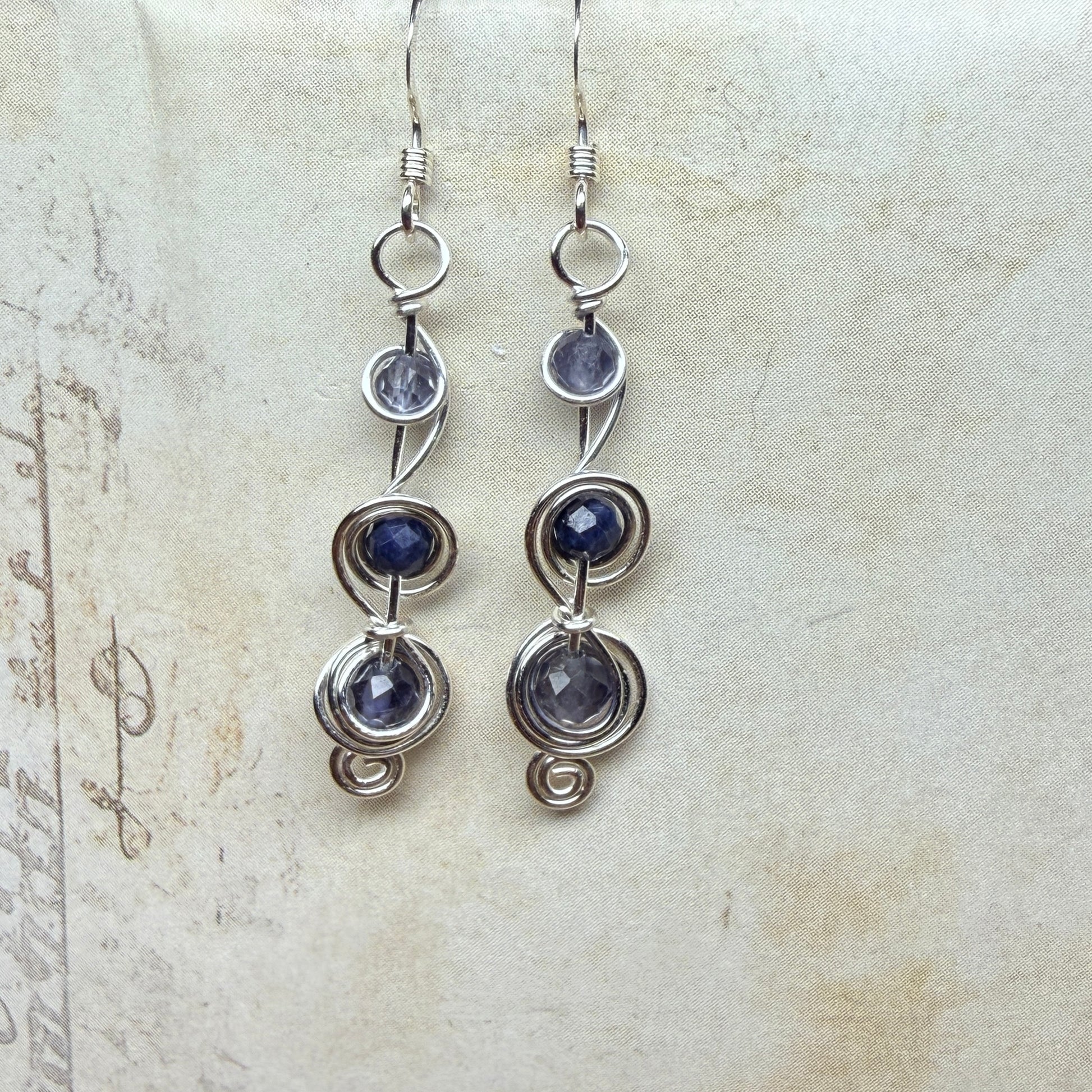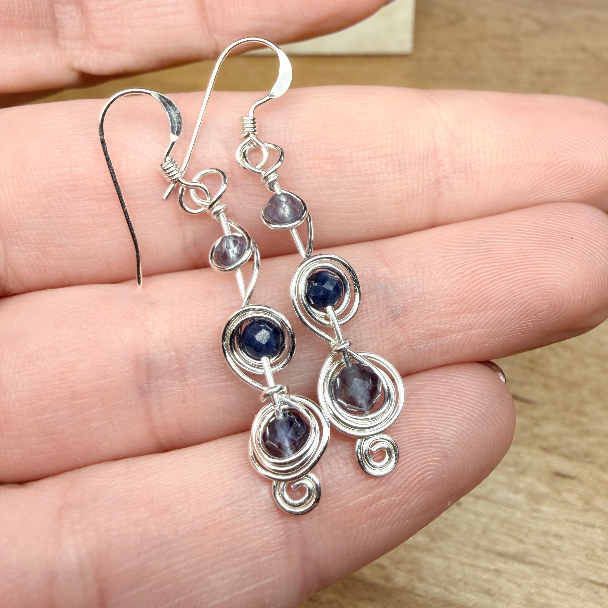 This pair is iolite and sapphire. Limited edition, please allow for very minor variations from pair to pair.