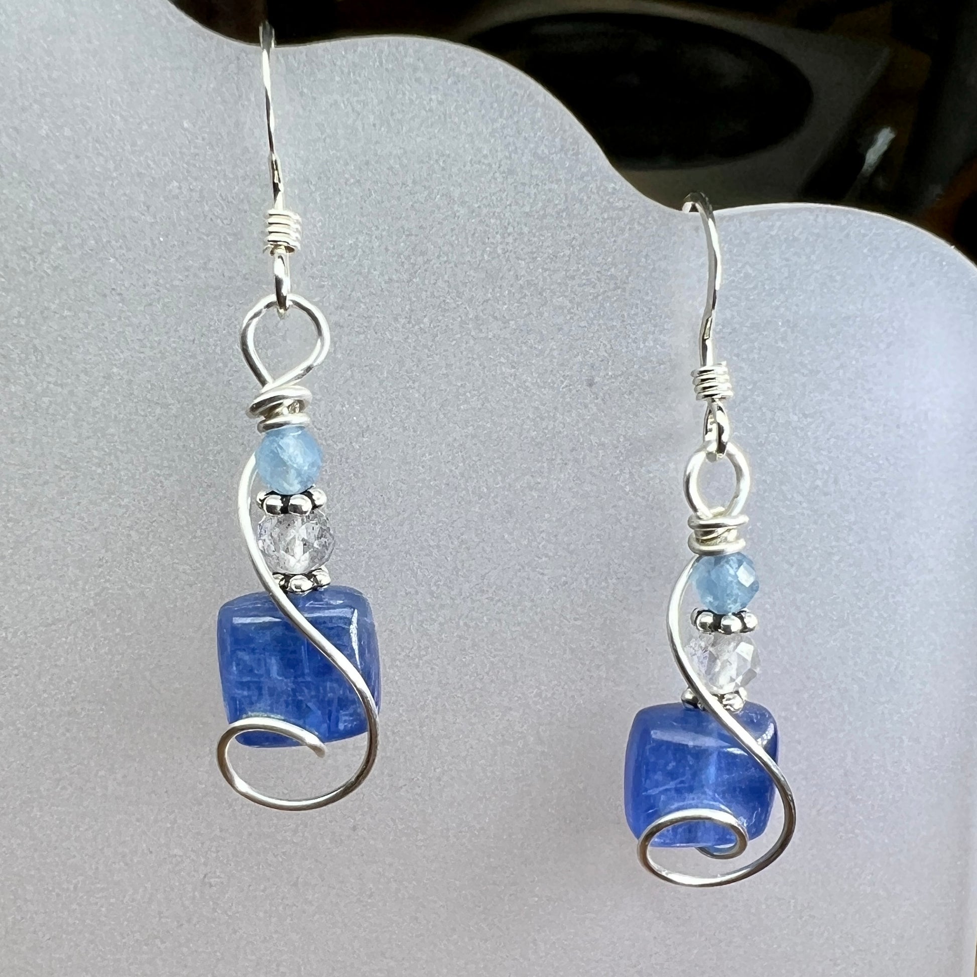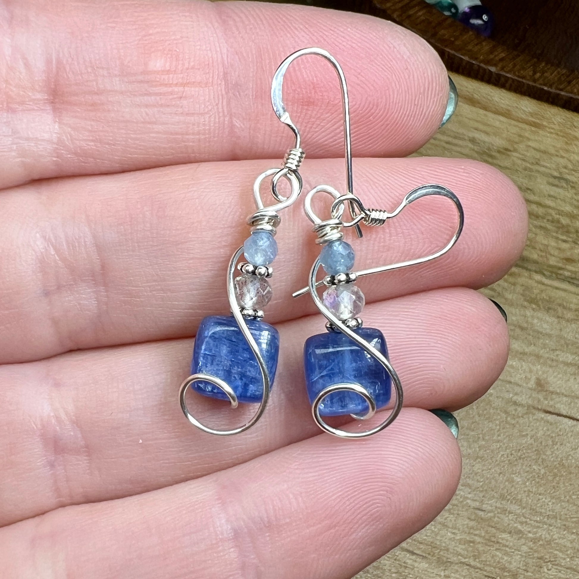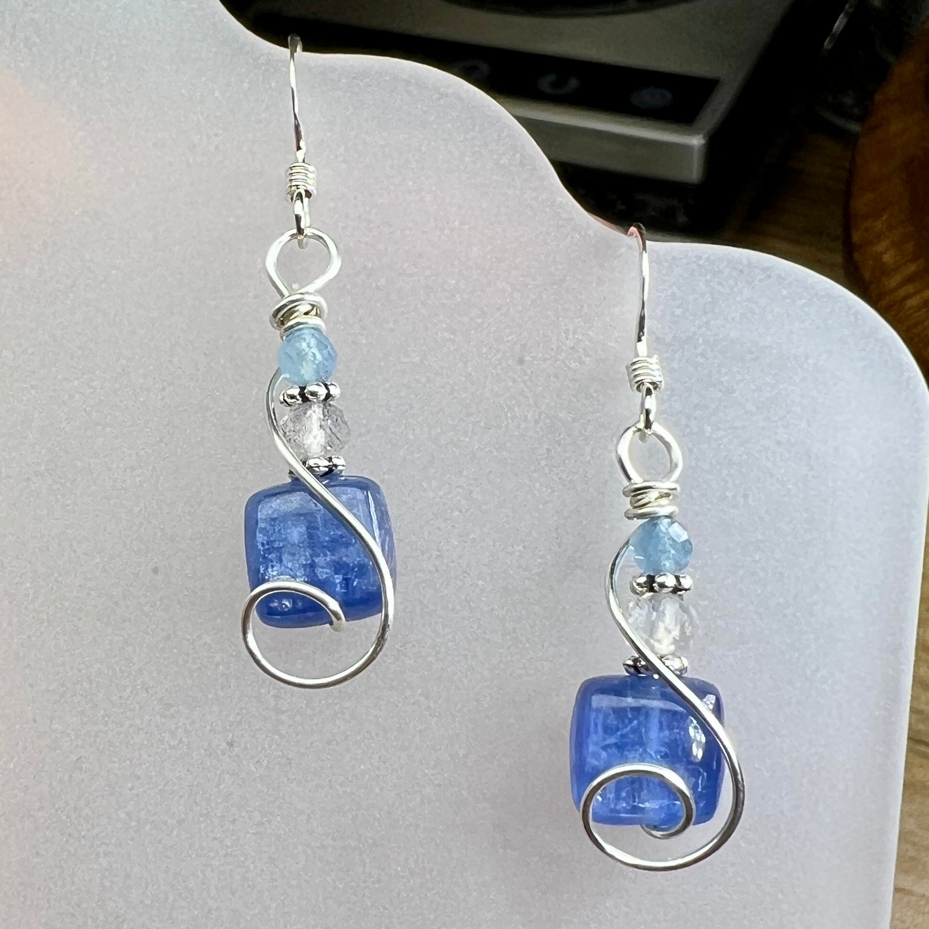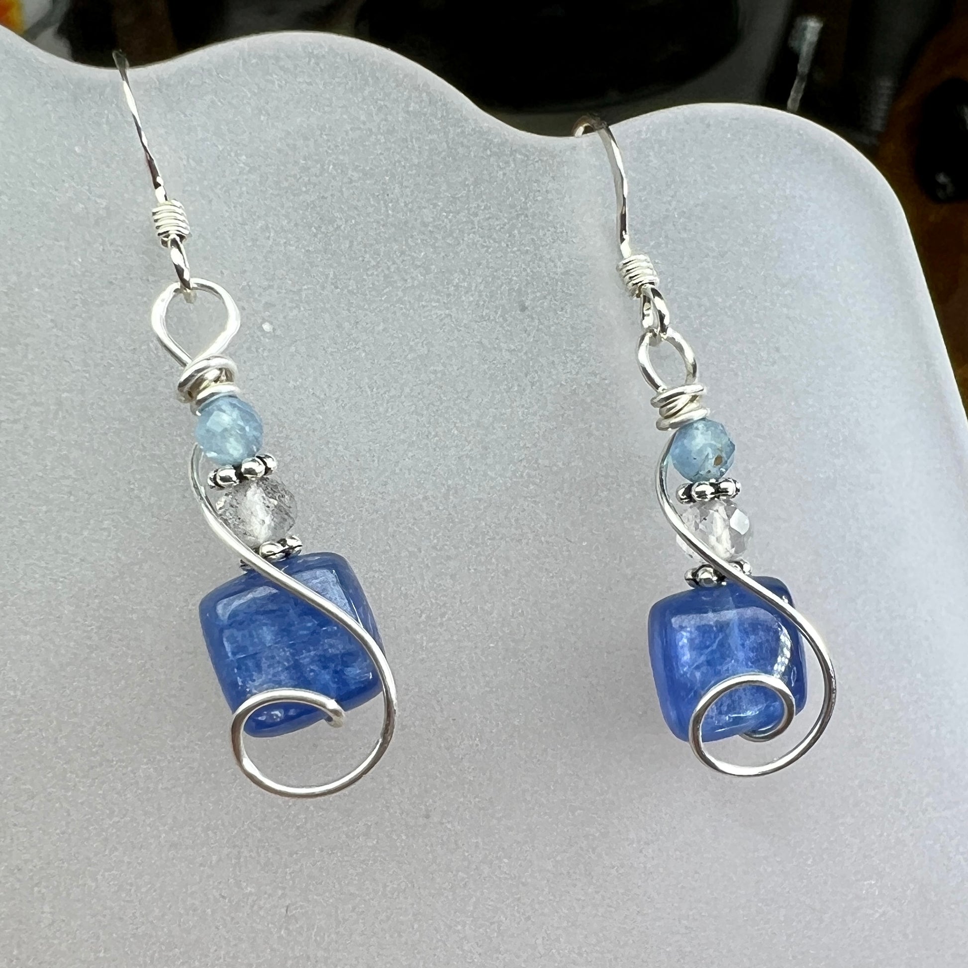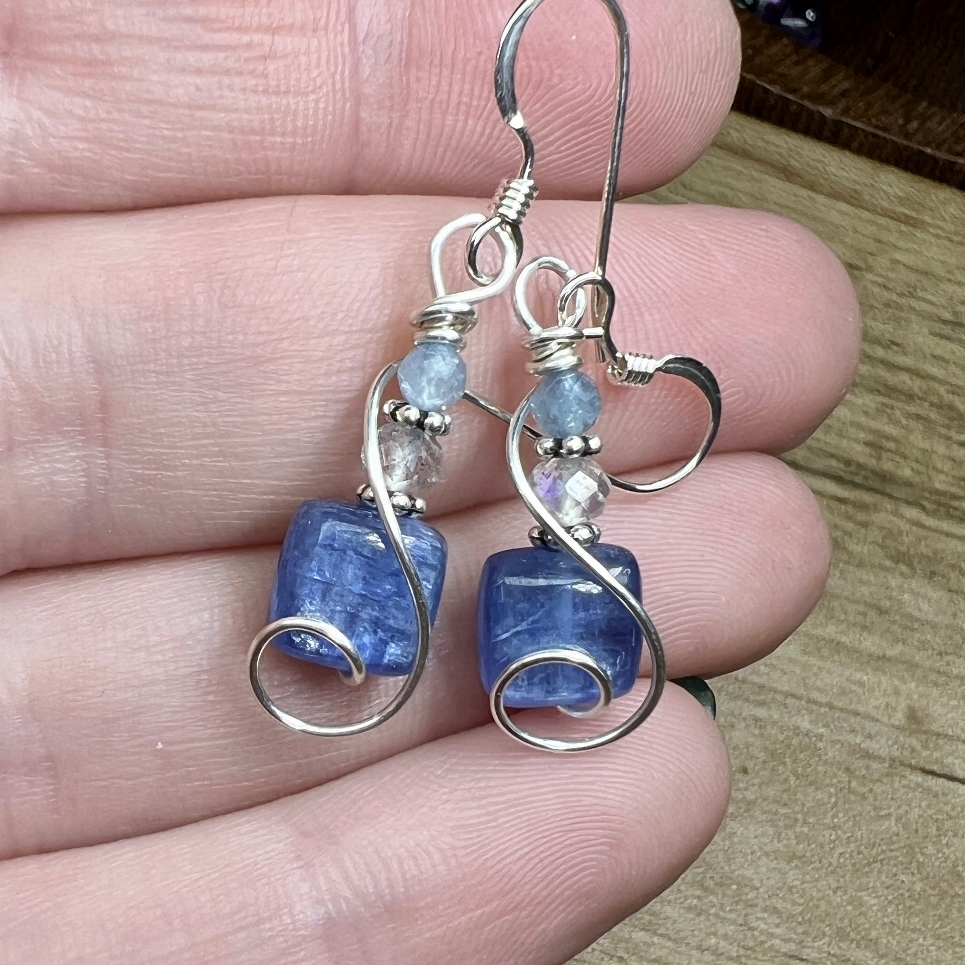 Deep blue kyanite with accents of labradorite and lighter blue aquamarine.