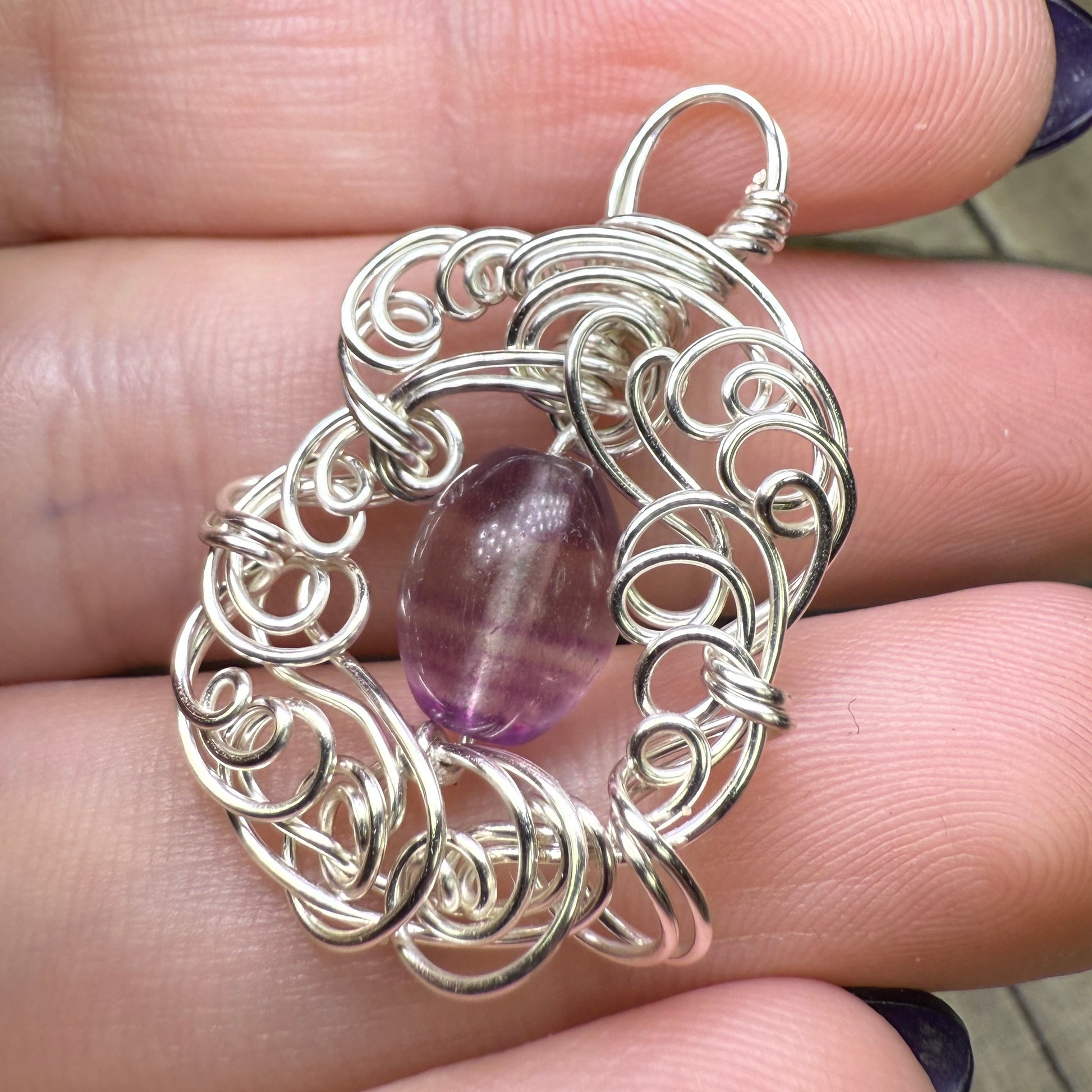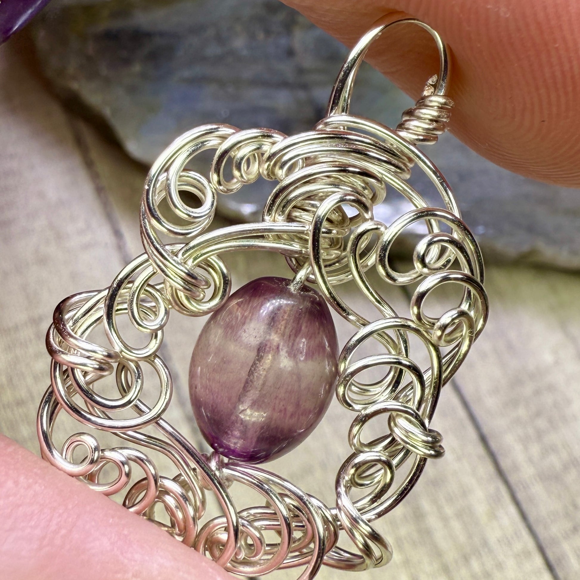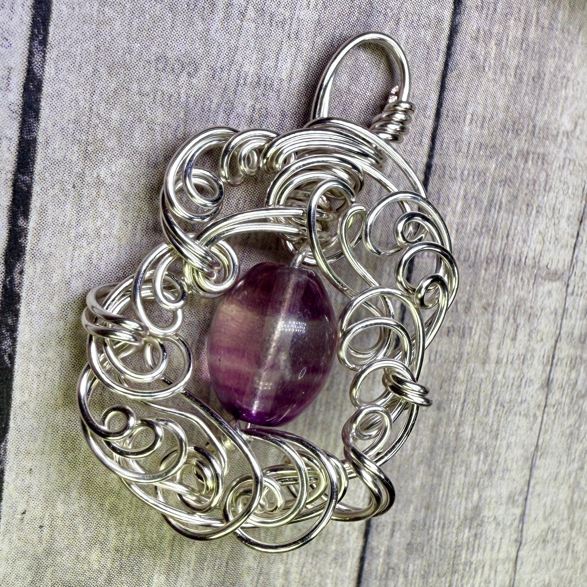 Fluorite and sculpted silver wire.