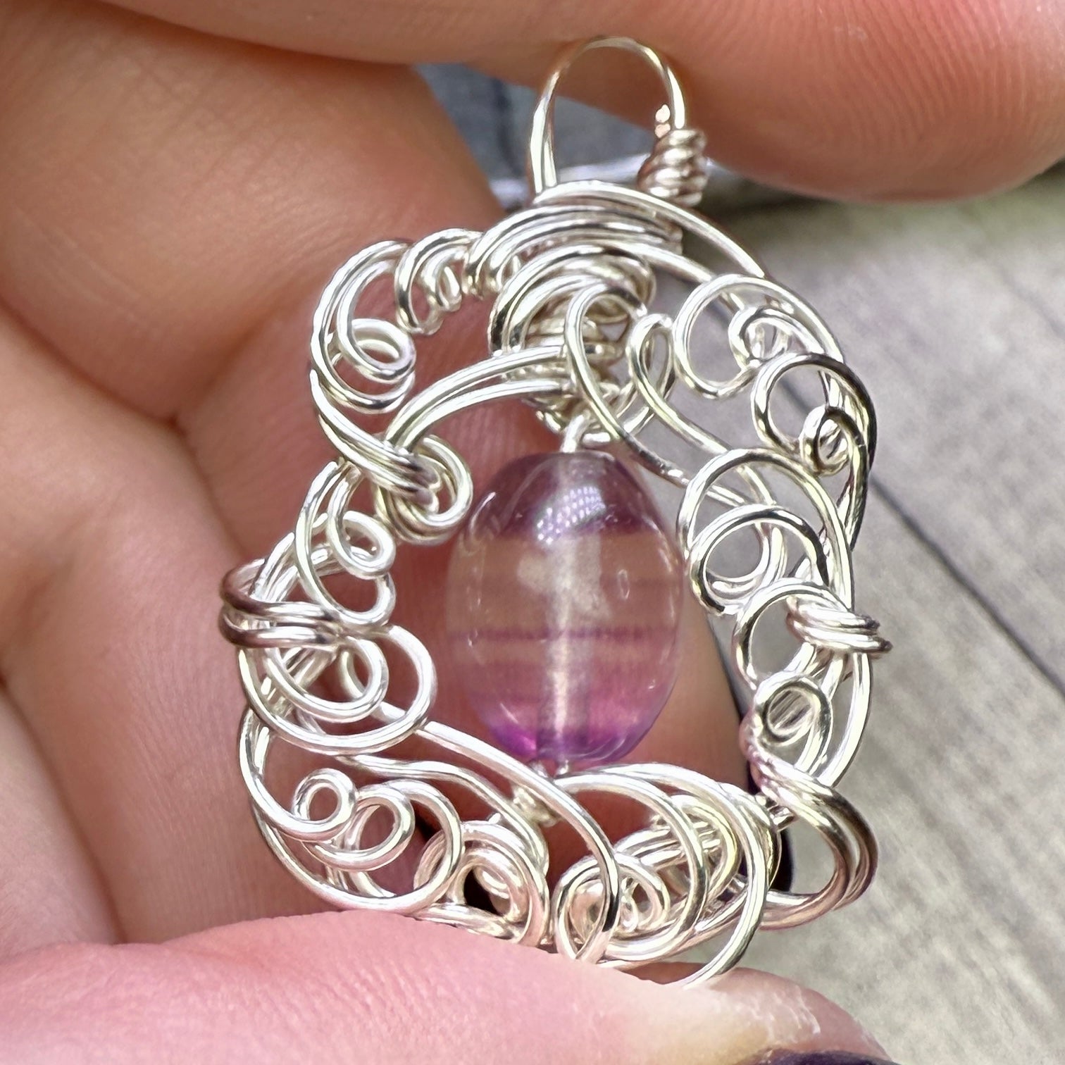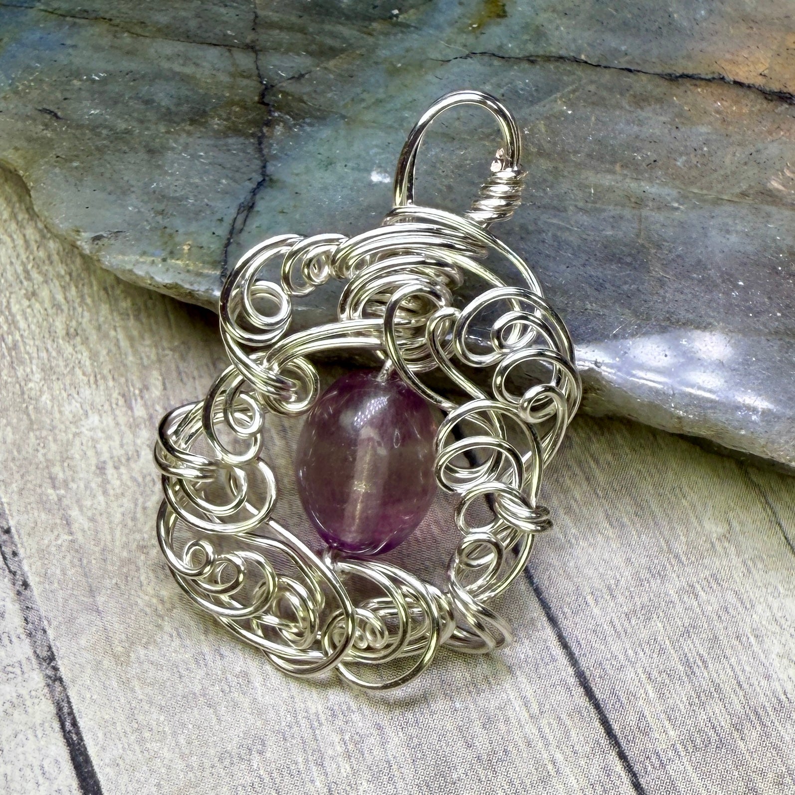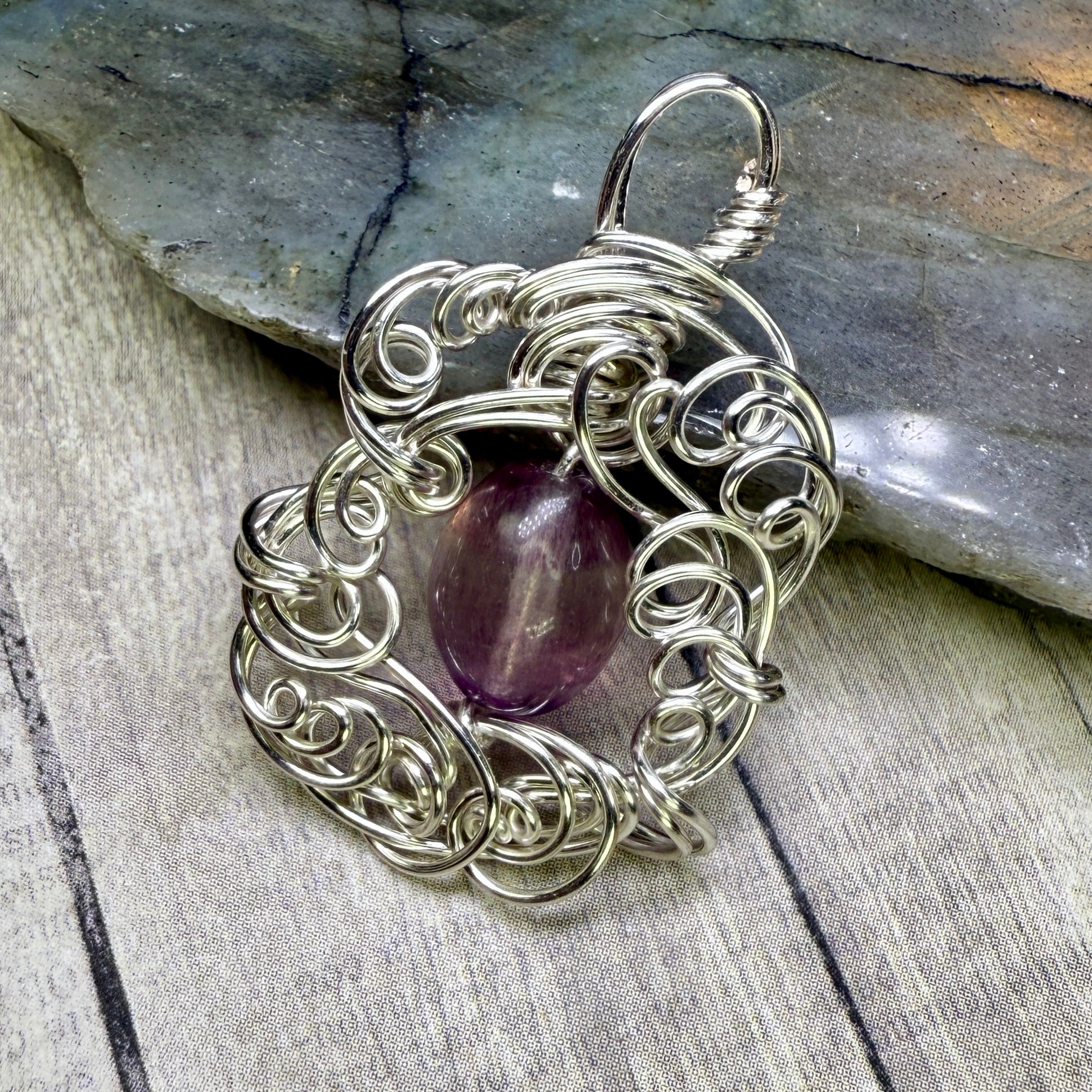 Fluorite and sculpted silver wire.